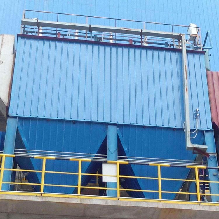 GA型大氣清灰袋式除塵器由進(jìn)出口煙道、除塵室、凈氣室、清灰系統(tǒng)及灰斗等組成。該離線脈沖除塵器工作時(shí)廢氣溫度降為130℃,瞬間可達(dá)180℃的含塵氣體由布袋除塵器中下部的進(jìn)口煙道分配后進(jìn)入各室的灰斗,煙氣由于折流和速度降低等原因使得比較粗、比較重的粉塵顆粒得以沉降,達(dá)到預(yù)分離的目的。細(xì)粉塵隨氣流轉(zhuǎn)折向上進(jìn)入離線脈沖除塵器的除塵室,由于離線脈沖除塵器濾袋的過(guò)濾作用,粉塵被阻留在濾袋的外表面,過(guò)濾后凈氣體由離線脈沖除塵器的濾袋內(nèi)部進(jìn)入各單元的凈氣室,并匯合于出口煙道"經(jīng)引風(fēng)機(jī)后通過(guò)煙囪排入大氣。